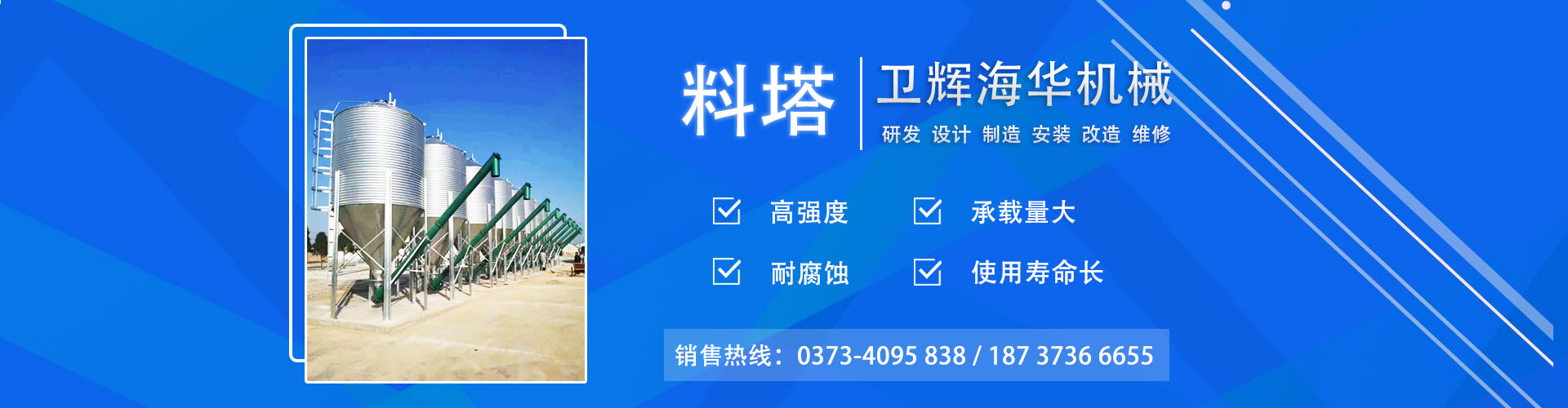 衛(wèi)輝市海華機械有限公司專業(yè)從事料塔料線、飼料攪拌機等方面的研發(fā)廠家,主要生產(chǎn)銷售散裝料塔、不銹鋼攪拌機、臥式攪拌機、小型飼料粉碎機、顆粒機、混合機等飼料機械設(shè)備。